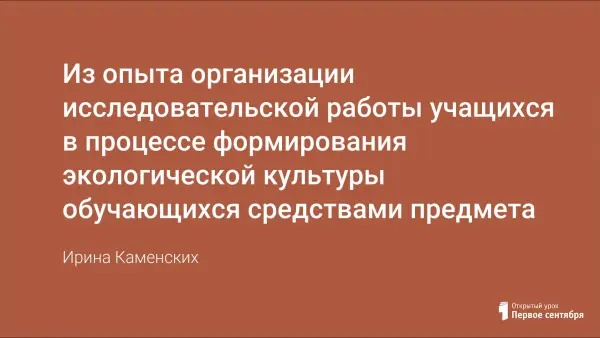 Из опыта организации исследовательской работы учащихся в процессе формирования экологической культуры обучающихся средствами предмета