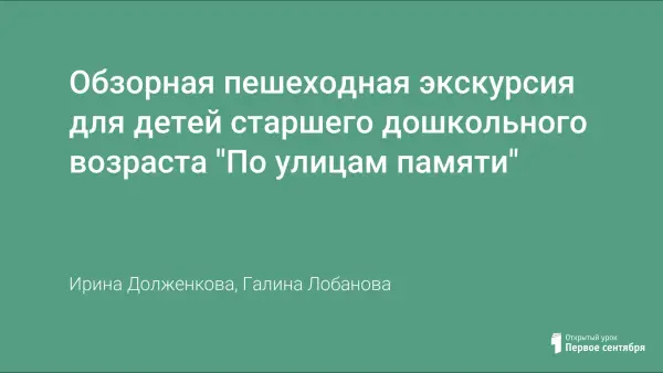 Обзорная пешеходная экскурсия для детей старшего дошкольного возраста "По улицам памяти"