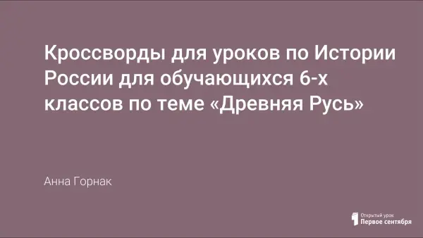 Представлены кроссворды для уроков по Истории России для обучающихся 6-х классов по теме «Древняя Русь».