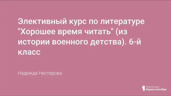 Данный элективный курс по литературе является важнейшей основной частью работы по привитию интереса к предмету. Данный элективный курс предназначен для учащихся 6-го класса, рассчитан на 35 часов. Для изучения в программу элективного курса включены художественные произведения, которые являются признанными образцами русской литературы, выражают жизненную правду, гуманистические идеалы. Основная идея программы - воспитывать у учащихся высокие нравственные качества. Особенность курса заключается в том, что изучаемые произведения не включены в списки для внеклассного и самостоятельного чтения, а героями многих произведений являются подростки.