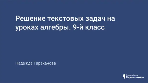 Решение текстовых задач на уроках алгебры. 9-й класс