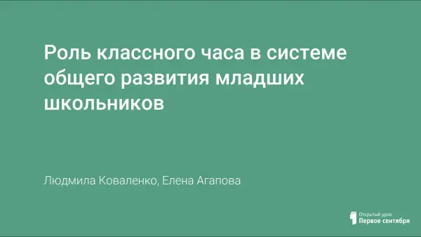 Роль классного часа в системе общего развития младших школьников