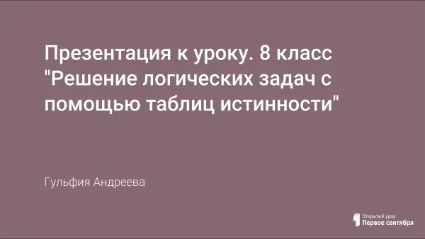 Представлена презентация по теме "Решение логических задач с помощью таблиц истинности".