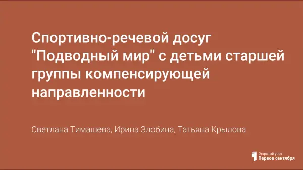 Спортивно-речевой досуг "Подводный мир" с детьми старшей группы компенсирующей направленности