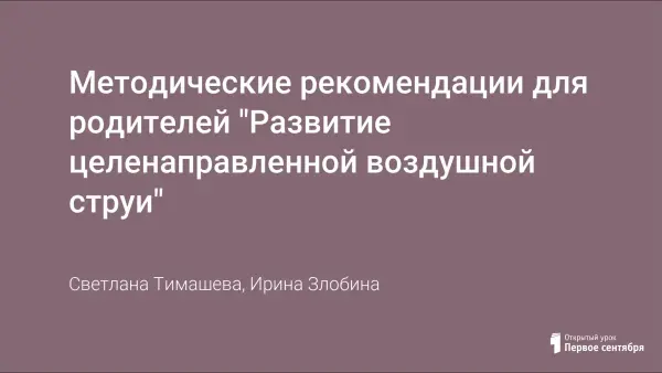 Методические рекомендации для родителей "Развитие целенаправленной воздушной струи"