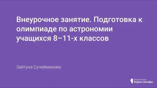 Цели: прорешать основные типы задач для подготовки учащихся к олимпиаде по астрономии; закрепить знания учащихся, умения и навыки для решения задач; воспитывать внимание, точность, умения работать в группе.