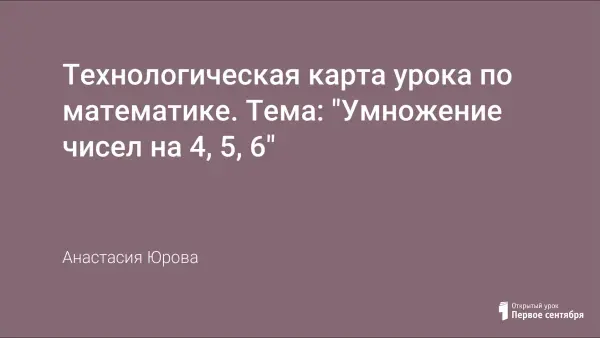 Технологическая карта урока по математике. Тема: "Умножение чисел на 4, 5, 6"