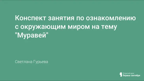 Цели урока: расширить знание детей о муравьях; развивать умение рассматривать особенности внешнего вида муравья, обогащать словарный запас; воспитывать бережное отношение к природе.