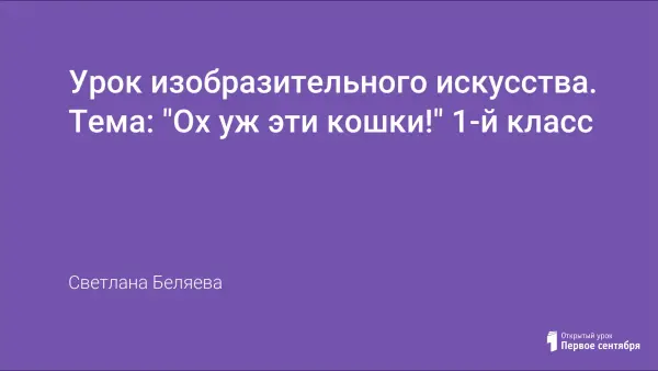 Урок изобразительного искусства формирует знания об анималистическом жанре, расширяет знания о кошках, знакомит со способами рисования с ИКТ. На уроке учащиеся развивают способности к формообразованию, творческое воображение, воспитывается любовь к животным.