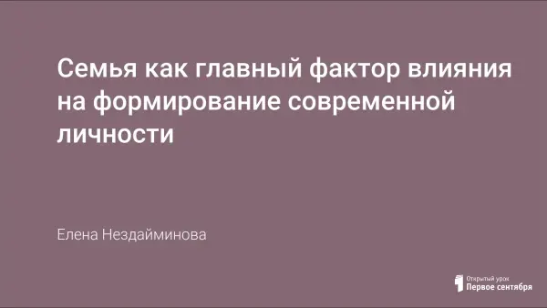 Семья является первым социальным институтом для ребенка и главным фактором развития ребенка как личности. Семья формирует морально-нравственные ценности, обогащает духовно, закладывает интересы и направленность личности. Формирует семейные ценности, атмосферу внутри семьи, которая будет является в будущем эталоном для построения уже новой ячейки общества.
