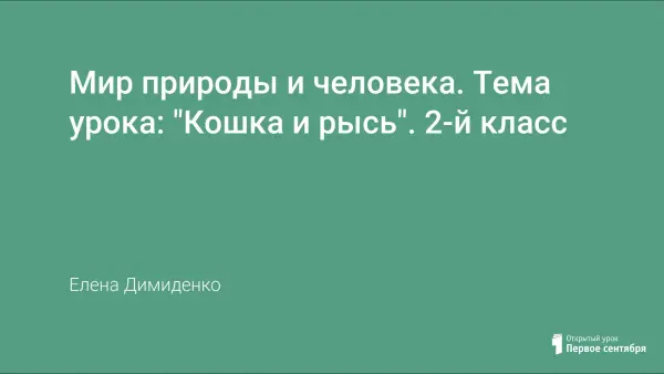 Цель урока: учить различать кошку и рысь по внешнему виду, месту обитания. Задачи: расширить представление о диких и домашних животных на примере кошки и рыси; развитие связной речи, через составление рассказа по плану о кошке и рыси.