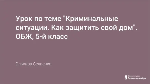Цель урока: содействовать усвоению знаний обучающихся: о характерных криминогенных ситуациях, которые могут возникнуть в доме (подъезде, лифте, лестничной клетке, квартире) и умению правильно действовать в криминогенных ситуациях; об опасном времени суток и опасных местах, при нахождении в которых возрастает степень угрозы личной безопасности; о правила безопасного поведения в доме и на улице.
