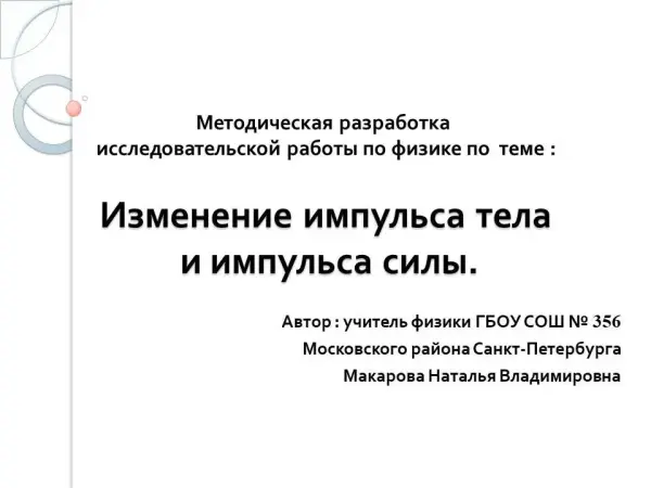 Методическая разработка исследовательской работы по физике по теме «Изменение импульса тела и импульса силы»