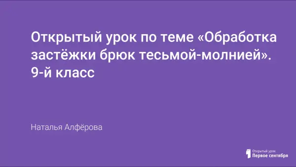Цель урока: знакомство с последовательностью обработки застежки брюк тесьмой-молнией, со специальным приспособлением к швейной машине.