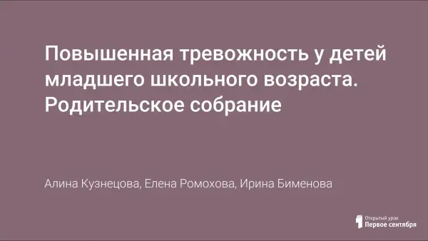 Задачи родительского собрания: познакомить родителей с понятием «повышенная тревожность», научить практическим приёмам коррекции тревожности у детей; помочь выработать правильный стиль семейного воспитания, чтобы избежать появления устойчивой тревожности; познакомить родителей с информационными ресурсами, которые помогут выявить наличие тревожности у ребёнка и способам борьбы с ней; диагностировать уровень тревожности у детей класса.