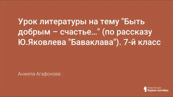Урок доброты по рассказу Ю.Яковлева «Баваклава» размышляет над такими вопросами, которые рано или поздно каждый из нас решает для себя сам. Что такое доброта? Дружба? Подлость? Что значит быть нужным людям? Как преодолеть в себе эгоистическое начало? На уроке поднимается тема, актуальная для всех, любви к ближнему, заботы об окружающих, уважения к старости.