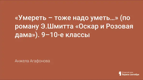 Урок-открытие по произведению Э.Шмитта «Оскар и Розовая Дама» – это урок раздумья, размышления над такими вопросами, которые рано или поздно каждый из нас решает для себя сам. Что такое любовь к ближнему, доброта, милосердие, сострадание? Мы теряем ощущение истинных ценностей, таких как семья, честь, дружба, любовь, всё чаще подменяя их зажиточностью, неумеренным потреблением и обладанием «престижными» вещами.