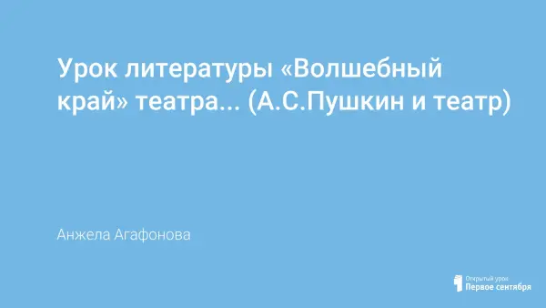 В работе содержится материал о раннем проявлении интереса А.С.Пушкина к театру, его взаимоотношения с актерами театра; можно найти ответы на вопросы в исследовательских работах учеников: Почему люди ходили в театр? Какое место занимал театр в жизни людей XIX века? Каков дух театра XIX века? Цель урока: воспитание любви к искусству, к творчеству А.С.Пушкина, показать роль театра в личности, индивидуальности поэта, в жизни каждого русского человека.