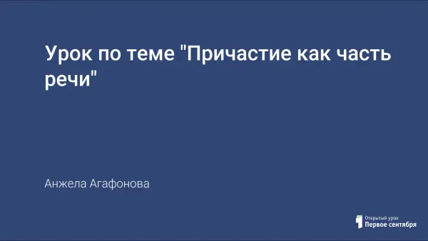 Урок «Причастие как часть речи» ориентирован на учащихся 10-го класса. Цели урока: повторить понятие о причастии и способах его образования, уметь отличать причастие от прилагательного, определять признаки глагола и прилагательного у причастий. Задача урока: систематизировать знания учащихся о причастии. Предусмотрены индивидуальная и коллективная форма урока.