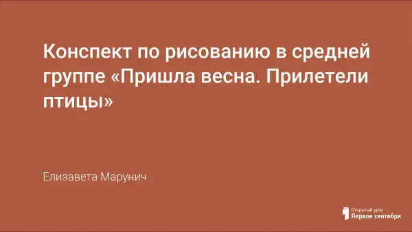 Программное содержание: воспитывать эстетическое восприятие окружающего мира; учить передавать на бумаге особенности весны (голубое небо, прилетают птицы, яркое солнце); учить располагать на бумаге правильно композицию.