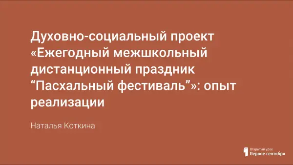 Опыт реализации ежегодного регионального праздника творчества для детей с ОВЗ и детей-инвалидов «Пасхальный фестиваль» будет интересен педагогам общеобразовательных организаций, где осуществляется работа с обучающимися с ОВЗ и инвалидностью, а также организаторам дистанционных и очных мероприятий для особых детей.