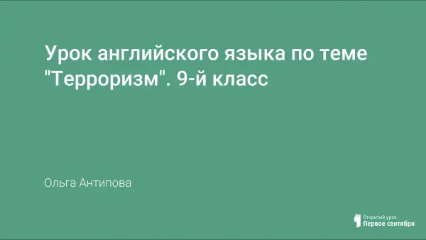 Урок обобщает и систематизирует знания учащихся по теме «Терроризм». Цель: формирование коммуникативной культуры и социально-культурной образованности учащихся через проблемное обучение. Учащиеся совершенствую навыки устной речи, чтения, аудирования. На уроке решается важнейшая задача – воспитание ответственности подростков к своей жизни и окружающих.