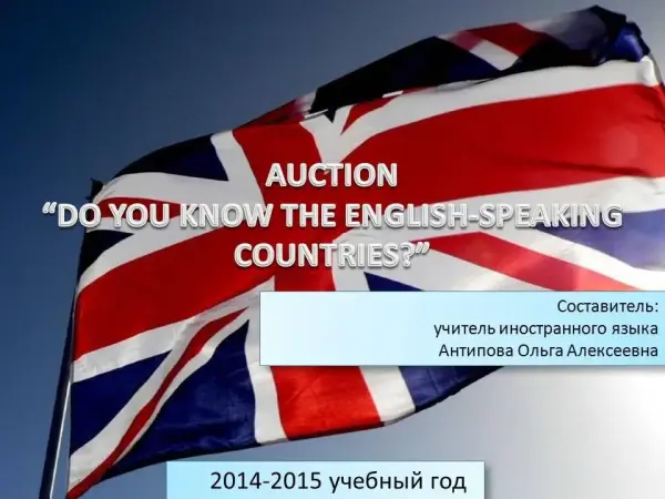 Внеклассное мероприятие «Аукцион» мотивирует учащихся на изучение английского языка, пробуждает интерес к знакомству с традициями, культурой, историческими фактами англо-говорящих стран, развивает творческие способности учащихся. Мероприятие предполагает участие школьников из разных параллелей в зависимости от уровня их подготовки.