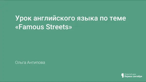 Урок английского языка по теме «Famous Streets» является заключительным. Он направлен на обобщение и систематизацию полученных знаний в данной сфере с целью формирования коммуникативной культуры и социально-культурной образованности учащихся. Учащиеся совершенствую навыки устной речи, чтения, аудирования. Однако на уроке решается важнейшая воспитательная задача – формирование ценностного отношения к окружающему миру.