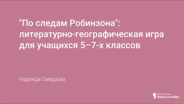Для публикации представлена разработка литературно-географической игры «По следам Робинзона» для учащихся 5–7-х классов. Часто ребята проходят мимо этого романа. Мне же хотелось посредством игры обратить их внимание на произведение. Тем более и повод подходящий – в 2019 году книга Даниеля Дефо «Жизнь и необычайные удивительные приключения Робинзона Крузо» отмечает большой юбилей – 300 лет. Игру можно провести как внеклассное мероприятие, как сдвоенный урок литературы, как библиотечное мероприятие.