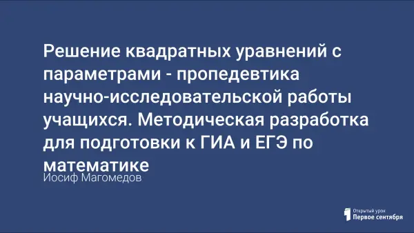 В разработке даны подробные методические указания по решению квад-ратных уравнений с параметрами, приведены теоремы о расположении корней квадратного трехчлена (необходимые и достаточные условия расположения корней квадратичной функции относительно заданных точек), применение теоремы Виета к решению квадратных уравнений с параметрами. Рассмотрены подробные решения задач для подготовки учащихся к ОГЭ и ЕГЭ по математике, предлагаются задачи для самостоятельного решения с ответами. Методическая разработка предназначена для учащихся 9–11-х классов, студентов педагогических вузов, а также для учителей. Пособие поможет в подготовке к сдаче ОГЭ и ЕГЭ по математике.