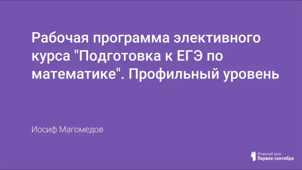 Данная программа предназначена для подготовки учащихся 11 класса общеобразовательной школы к ЕГЭ по математике на профильном уровне. Программа составлена на основе программы среднего общего образования (профильный уровень) по математике. Рассчитана на один год обучения в объеме 34 часа. Цели курса: практическая помощь учащимся в подготовке к экзамену через повторение, систематизацию, расширение и углубление знаний; формирование качеств мышления, характерных для математической деятельности и необходимых для продуктивной жизни в обществе.