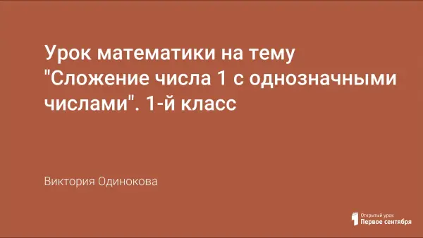 Урок составлен по всем требованиям ФГОС с учетом индивидуальных особенностей класса и рекомендациями программы. Цель урока: создать условия для формирования умения складывать число 1 с однозначными числами.