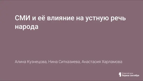 СМИ и её влияние на устную речь народа
