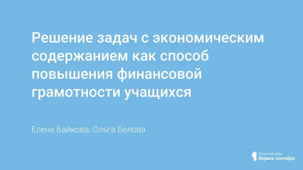 Решение задач с экономическим содержанием как способ повышения финансовой грамотности учащихся