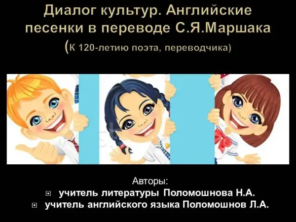 Внеклассное мероприятие, посвященное 130-летию С.Я.Маршака, детскому английскому фольклору, мотивирует обучающихся к изучению литературы, английского языка, художественного чтения, издательского дела, что способствует формированию социокультурной компетенции учащихся 5–6-х классов. Обучающиеся знакомятся с творчеством С.Я.Маршака - мастера литературного перевода.