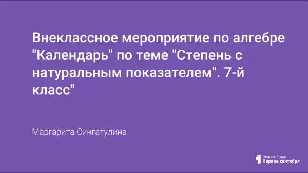 Цели урока: обобщить, повторить знания по теме «История возникновения календаря», проверить умение детей подбирать материал по теме, закрепить навыки решения примеров по теме «Степень с натуральным показателем и ее свойства», развивать логическое мышление, устный счет учащихся, развивать устную речь и коммуникативные способности учащихся.