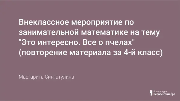 Цели мероприятия: развивать интерес детей к математике, их математические способности; учить выполнять логические операции; прививать любовь к природе; расширять кругозор учащихся.