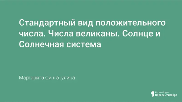 Цели урока: закрепить понятие стандартного вида положительного числа в ходе в выполнения упражнений и решения задач; развивать вычислительные навыки; развивать навыки решения задач с числами, записанными в стандартном виде; развивать познавательный интерес к изучению предмета.