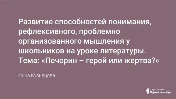 Основная цель моих уроков - показать на разном учебном материале, каково строение и основные принципы процесса проблематизации. Мои девятиклассники очень любят открывать новое, мыслить, спорить, рассуждать, выявлять проблему. После изучения романа М.Ю.Лермонтова «Герой нашего времени» ребята вместе со мной проводили исследовательскую работу «Печорин - герой или жертва?». Проблемный анализ строился на сцеплении вопросов, каждый из которых решался в противоборстве, поединке мнений.