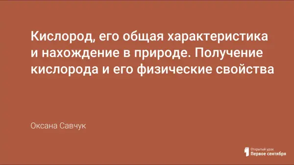 Цели урока: создать условия для усвоения знаний о кислороде как химическом элементе и простом веществе, получении кислорода в лаборатории, физических свойствах, нахождении в природе; побуждать учащихся к сравнению, анализу полученной информации; проводить химический эксперимент, соблюдая правила техники безопасности; развивать умение анализировать, формулировать выводы.