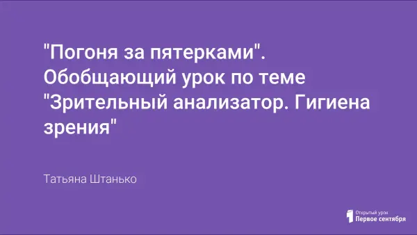 Урок обобщает, углубляет и систематизирует знания учащихся о строении и функциях зрительного анализатора, гигиене зрения. Развивает творческие способности и познавательный интерес, креативное мышление.