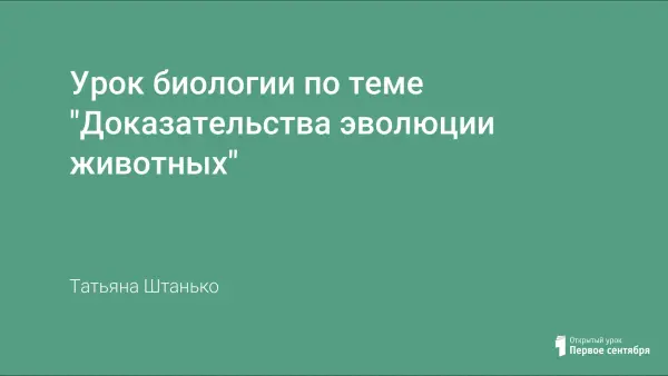 Цели урока: познакомиться с основными группами доказательств эволюции животных; научиться приводить примеры доказательств эволюции животного мира.