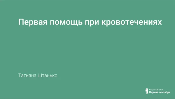 Цели урока: научить учащихся распознавать виды кровотечений и оказывать первую помощь при кровотечениях.