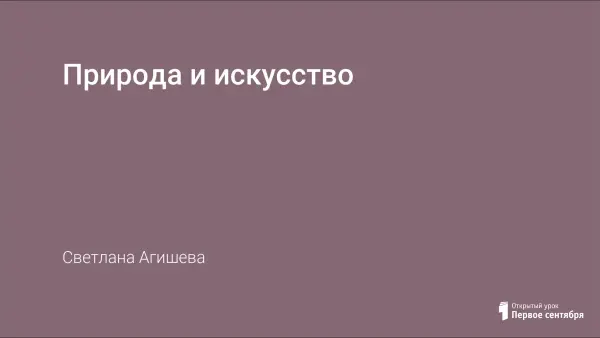 Комплекс уроков посвящен взаимосвязи природы и видов изобразительного искусства. Каждое произведение искусства так или иначе связано с определенной средой, явлениями или объектами природы. Уроки данного раздела раскрывают взаимоотношения архитектуры и окружающей природы, особенности существования скульптуры в определенной среде, некоторые принципы отражения природы в живописи.