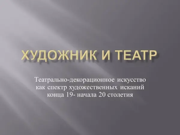 Урок посвящен Году театра. Основная цель занятия познакомиться с лучшими сценографами русского театра и рассмотреть, как менялась сценография с конца XIX до начала XX века. А также выявить характерные особенности работ замечательных художников сцены. На уроке идет краткое повествование материала, основанное на сравнении образцов декораций и костюмов разных периодов развития театрального искусства: от Коровина К.А. и Головина А.Я. и до Петрова-Водкина К.С.