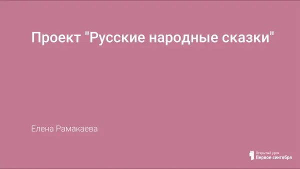 Цель проекта: познакомить детей с русскими народными сказками; прививать любовь к русским народным сказкам; развивать чувство добра, справедливости и любви к родной культуре через русские народные сказки; воспитывать патриотические чувства у детей.