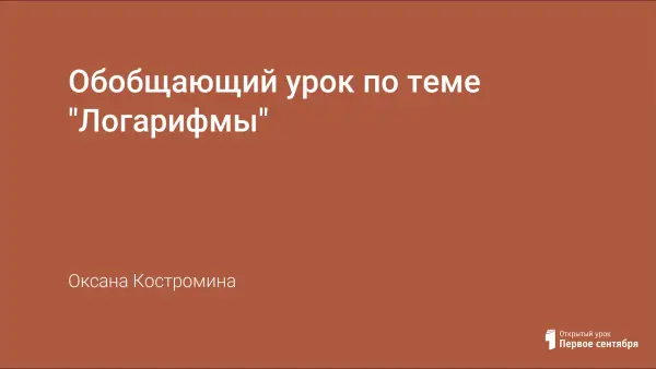 Представлен обобщающий урок по теме "Логарифмы" в курсе 10-го класса предмета "Алгебра и начала анализа". Целью данного урока является: обобщение и закрепление изученного материала; формирование компетентности в сфере индивидуальной самостоятельной познавательной деятельности, критического мышления, а также навыков работы в команде; формирование представлений об идеях и методах математики, о математике как форме описания и методе познания действительности.