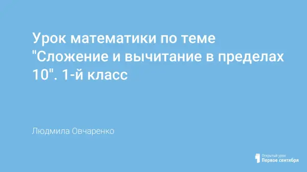 Цель урока: повторить изученный материал и закрепить вычислительные навыки (сложение и вычитание в пределах 10), создать условия для закрепления состава чисел первого десятка; умения решать задачи и выражения изученных видов, развития внимания, наблюдательности, логического мышления, навыков устного счёта; воспитывать чувства товарищества, культуры общения, чувства взаимовыручки, приобщать к здоровому образу жизни.