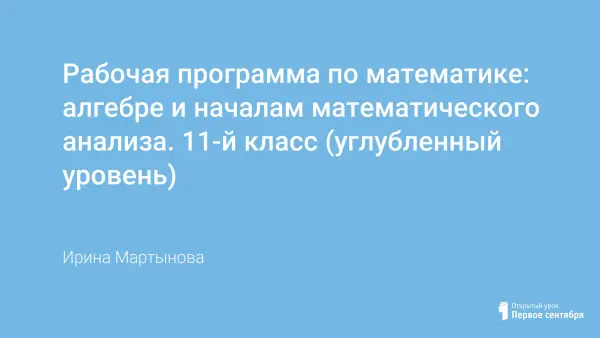 Цели учебного предмета: формирование представлений о математике как универсальном языке науки, средстве моделирования явлений и процессов, об идеях и методах математики; развитие логического мышления, пространственного воображения, алгоритмической культуры, критичности мышления на уровне, необходимом для будущей профессиональной деятельности, а также последующего обучения в высшей школе; овладение математическими знаниями и умениями, необходимыми в повседневной жизни, для изучения школьных естественнонаучных дисциплин на углубленном уровне, для получения образования в областях, требующих углубленной математической подготовки; воспитание средствами математики культуры личности, понимания значимости математики для научно-технического прогресса, отношения к математике как к части общечеловеческой культуры