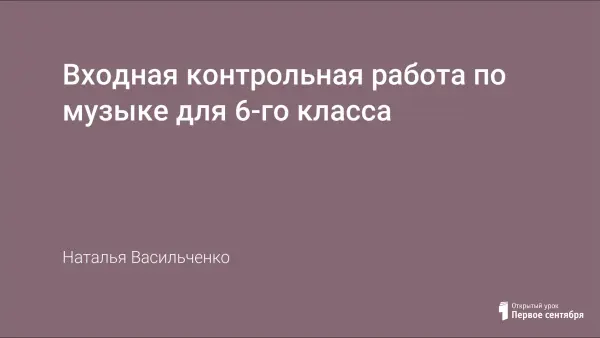 Цель работы: проверить знания по теме "музыка для 6 класса"
